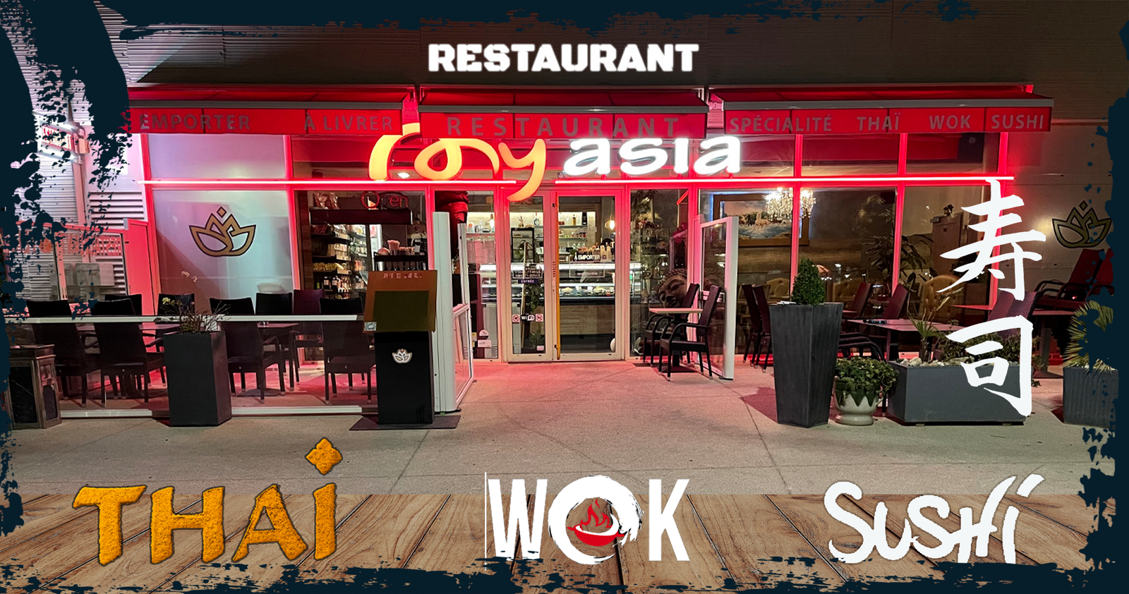 EntréeBobunPlatSushiBoisson l' asie chez vous, à emporter et sur placeRemise 10%* (Commander par sms) LIVRAISON PAR UBER EATS